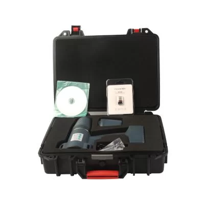 Battery-powered operation with adjustable print distance, works on cartons, wood, plastic and metal surfaces with various ink types.
